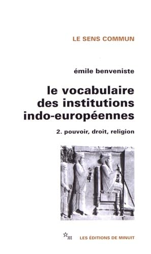 Le Vocabulaire des institutions indo-européennes. / Emile BENVENISTE ; Avec la collaboration de Jean LALLOT, 2, Pouvoir, droit, religion. [Books] Publication: Paris : Minuit, 1994Description: 339 p. :