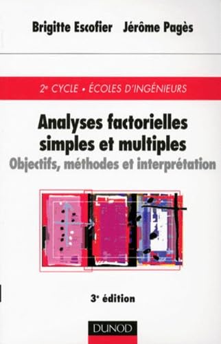 Analyses factorielles simples et multiples : objectifs, méthodes et interprétation / Brigitte ESCOFIER / Jérôme PAGES [Books] Publication: Paris : Dunod, 2001Description: 284 p. :
