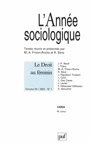 Le droit au féminin. [articles] ; édité par Marie-Anne FRISON-ROCHE et René SEVE, fasc. 1 Publication: PUF, Paris : 2003Description: pp. 9-243Availability: