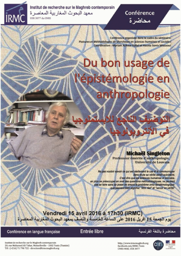 Du bon usage de l'épistémologie en anthropologie [attachments] / TUNISIE. Institut de recherche sur le Maghreb contemporain - IRMC (Tunis) : Conférence : 15/04/2016 = التوضيف الناجع للإبستمولوجيا في الأنتروبولوجيا
