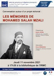 Les mémoires de Mohamed Salah Mzali [attachments] : présentation d'ouvrage 11-11-2021 Publication: Tunis : IRMC, 2021Description: 1 aff. :