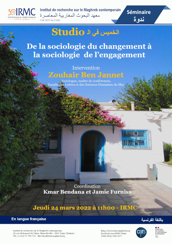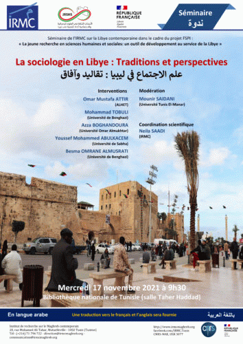 La sociologie en Libye [attachments] : séminaire 17 novembre 2021 : Traditions et perspectives Publication: Tunis : IRMC, 2021Description: 1 aff. :