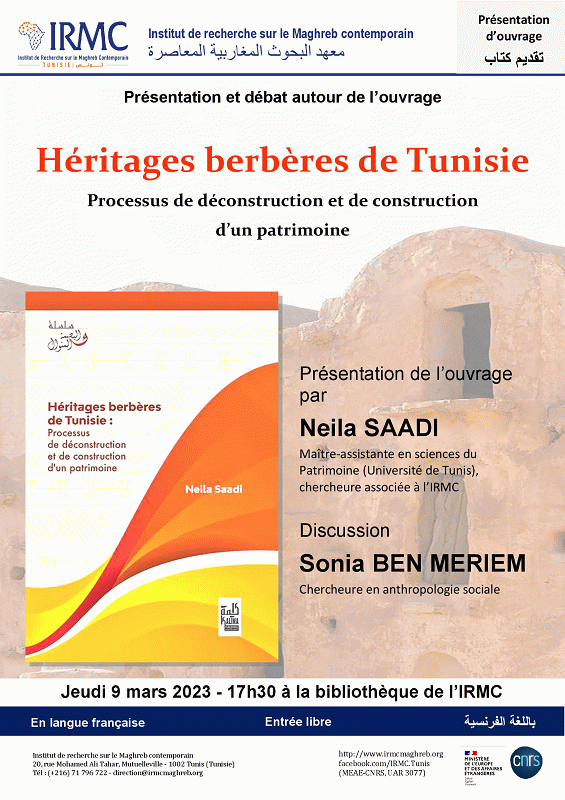 Héritages berbères de Tunisie [attachments] : présentation et débat 09-03-2023 : processus de déconstruction et de construction d'un patrimoine Publication: Tunis : IRMC, 2023Description: 1 aff. :