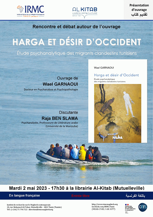 Harga et désir d'Occident [attachments] : présentation d'ouvrage 02-05-2023 : étude psychanalytique des migrants clandestins tunisiens Publication: Tunis : IRMC, 2023Description: 1 aff. :
