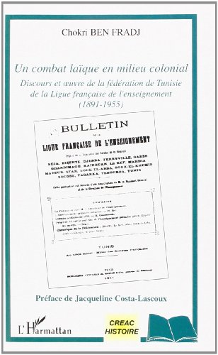 Un combat laïque en milieu colonial : discours et oeuvre de la fédération de Tunisie de la ligue française de l'enseignement (1881-1955) / Chokri BEN FRADJ ; Préfacé par Jacqueline COSTA-LASCOUX [Books] Publication: Budapest : Paris : Turin : l'Harmattan, 2004Description: 251 p. :