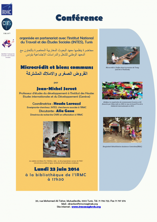 Microcrédit et biens communs [attachments] : Conférence : 2014-06-23 = القروض الصغرى و الأملاك المشتركة Publication: Tunis : IRMC, INTES, 2014Description: 1 aff. :