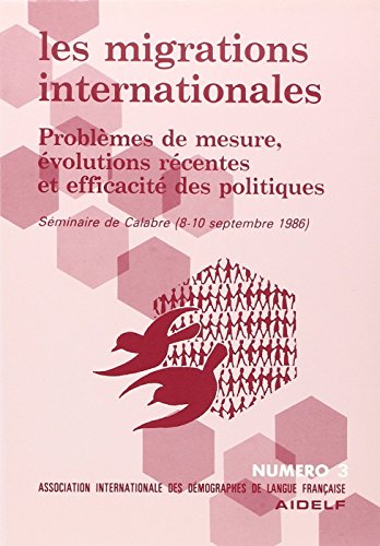 Les Migrations internationales : problèmes de mesure, évolutions récentes et efficacité des politiques : séminaire de Calabre, 8-10 septembre 1986. ; Association Internationale des Démographes de Langue Française - AIDELF (Paris), 3 [Books] Publication: Paris : AIDELF, 1988Description: IX-513 p. :
